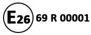 homologacijske oznake s nazivom proizvođača, E26 RF 01001,